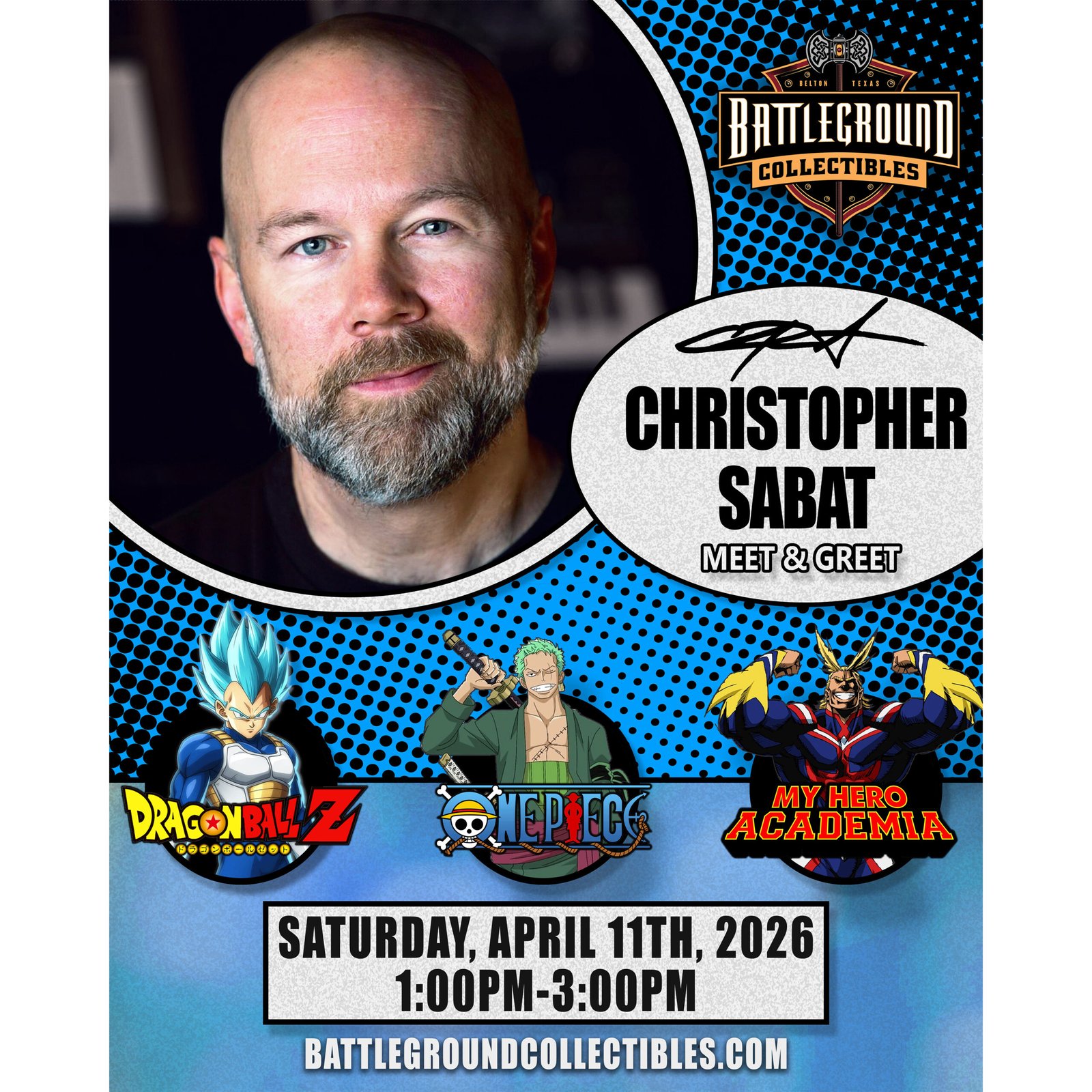 Get ready, anime fans and voice acting enthusiasts in Texas—Christopher Sabat, the legendary voice behind some of the most iconic characters in anime history, is coming to Battleground Collectibles in Belton, Texas!